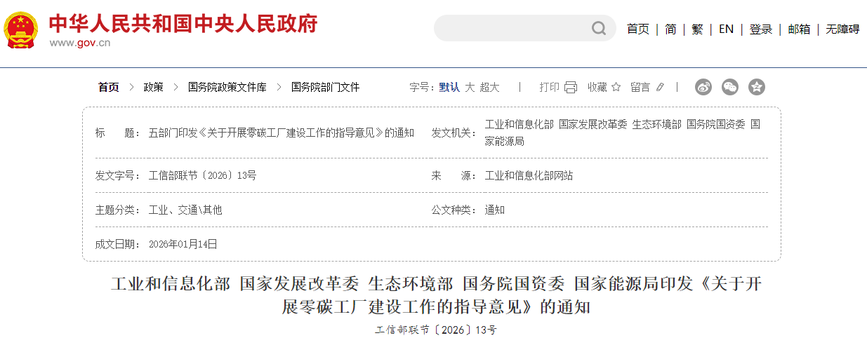 工信部等五部分联合印发《关于开展零碳工厂建设事情的指导意见》